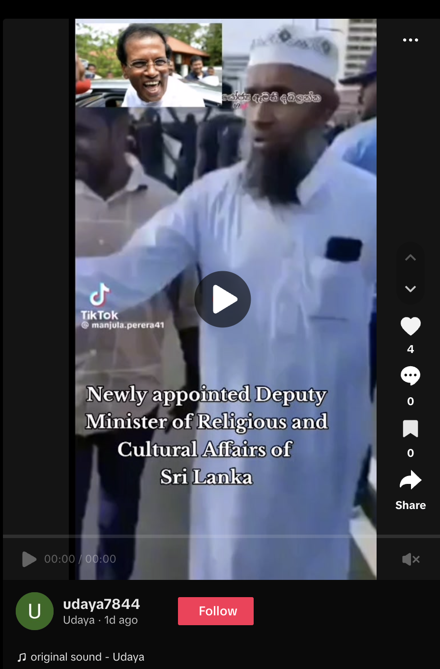 On October 13, 2025, parliamentarian Mohamed Muneer Mulaffar took oath as the Deputy Minister of Religious and Cultural Affairs of Sri Lanka. Since then, a video showing a man in traditional Islamic attire criticising Gotabaya Rajapaksa purportedly during the Aragalaya protests, is being widely shared on TikTok with the caption, “Newly appointed Deputy Minister of Religious and Cultural Affairs of Sri Lanka.”